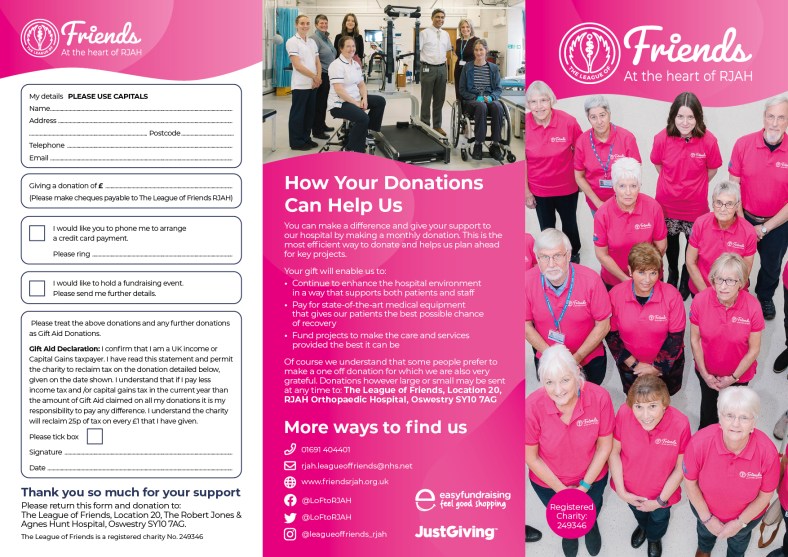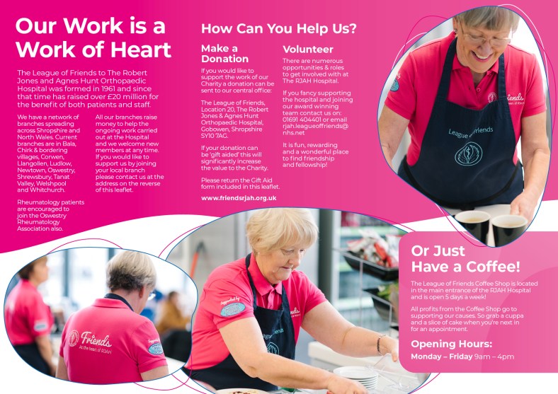 I was asked by The League of Friends at RJAH charity organisation, based at my local hospital, to redesign their main donation leaflet. Previously this prime marketing piece had all the information but was not in keeping with their recent branding update. I took the new branding queues from their guidelines and their website update, and tied the new design language together in this artwork. Now all their marketing has a professional and consistent look and feel to help get their crucial messages out to the public.