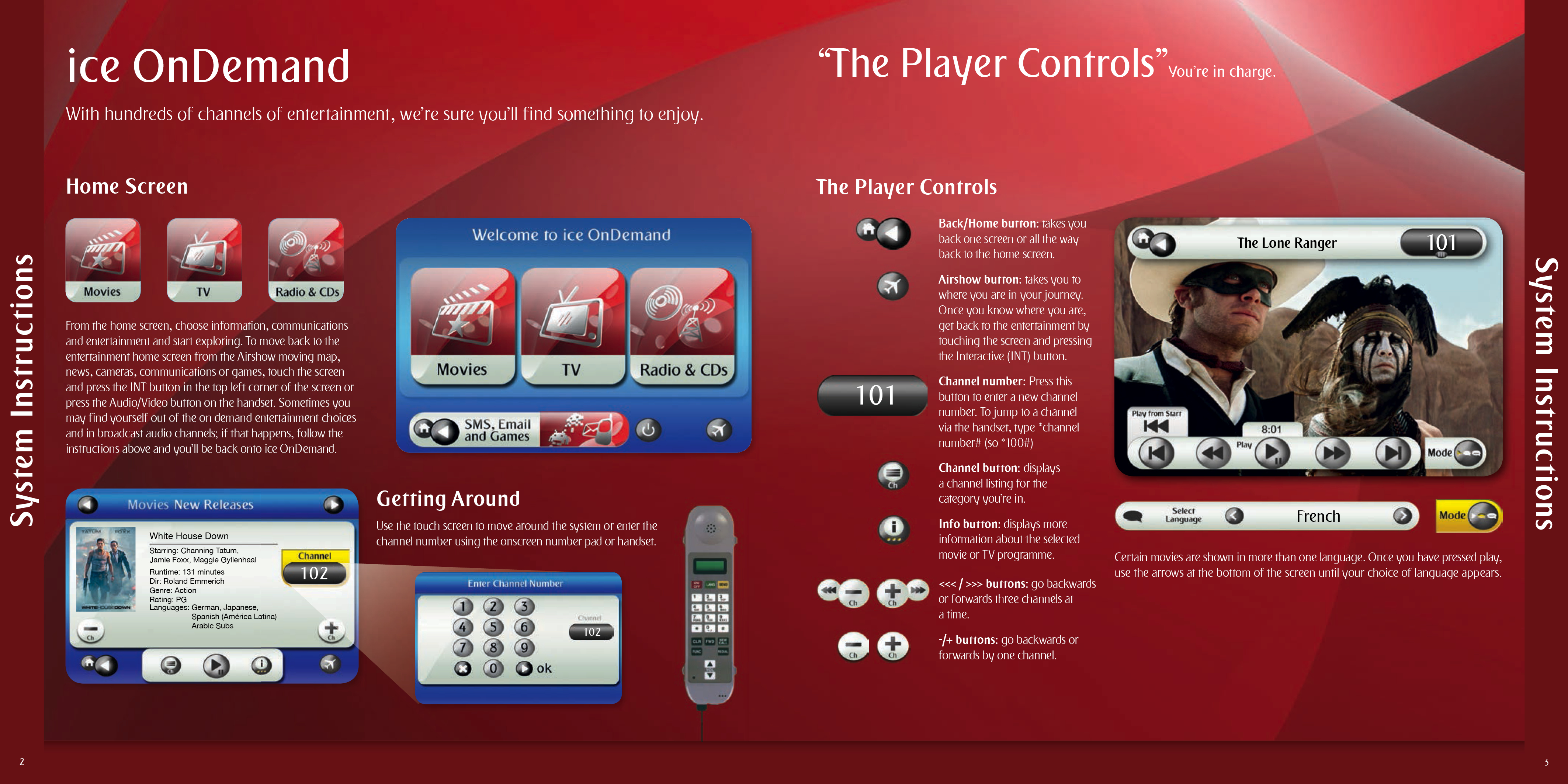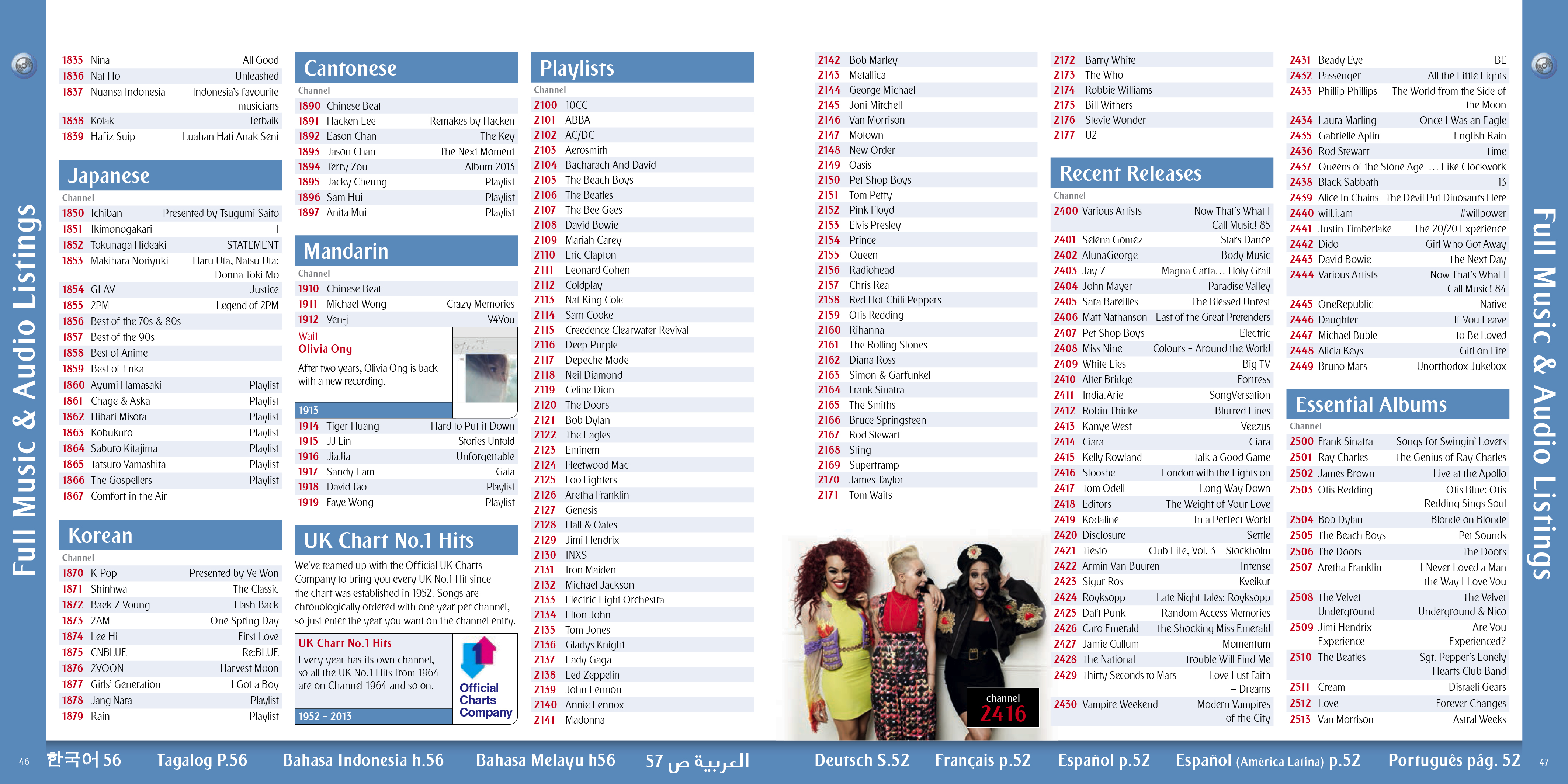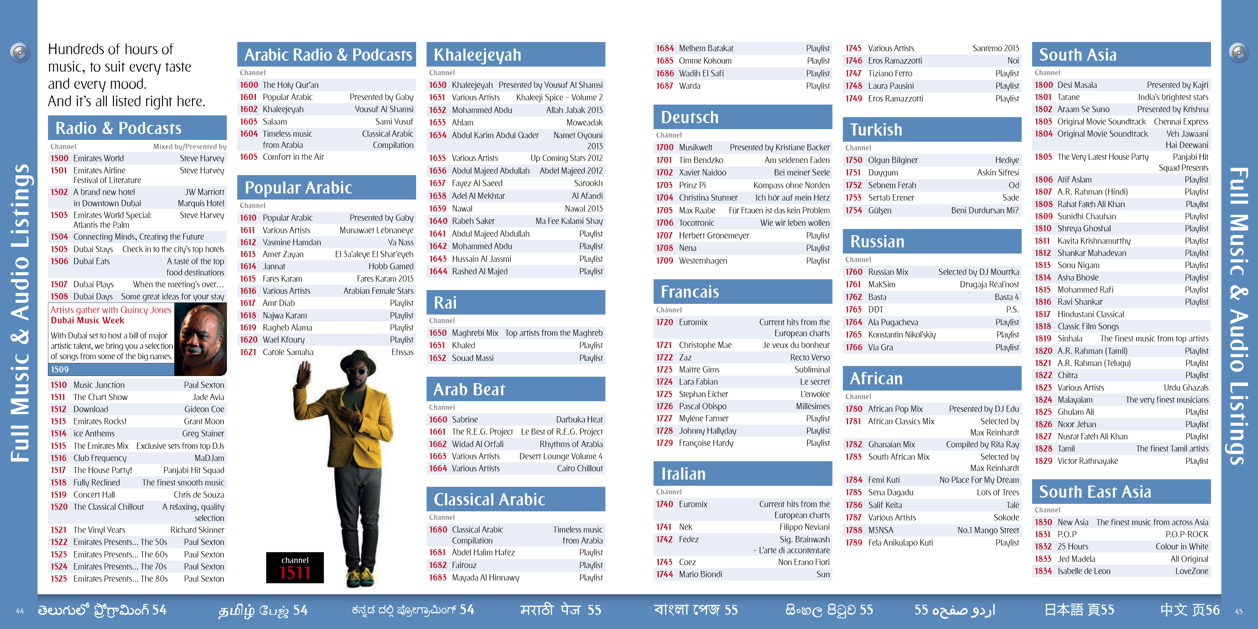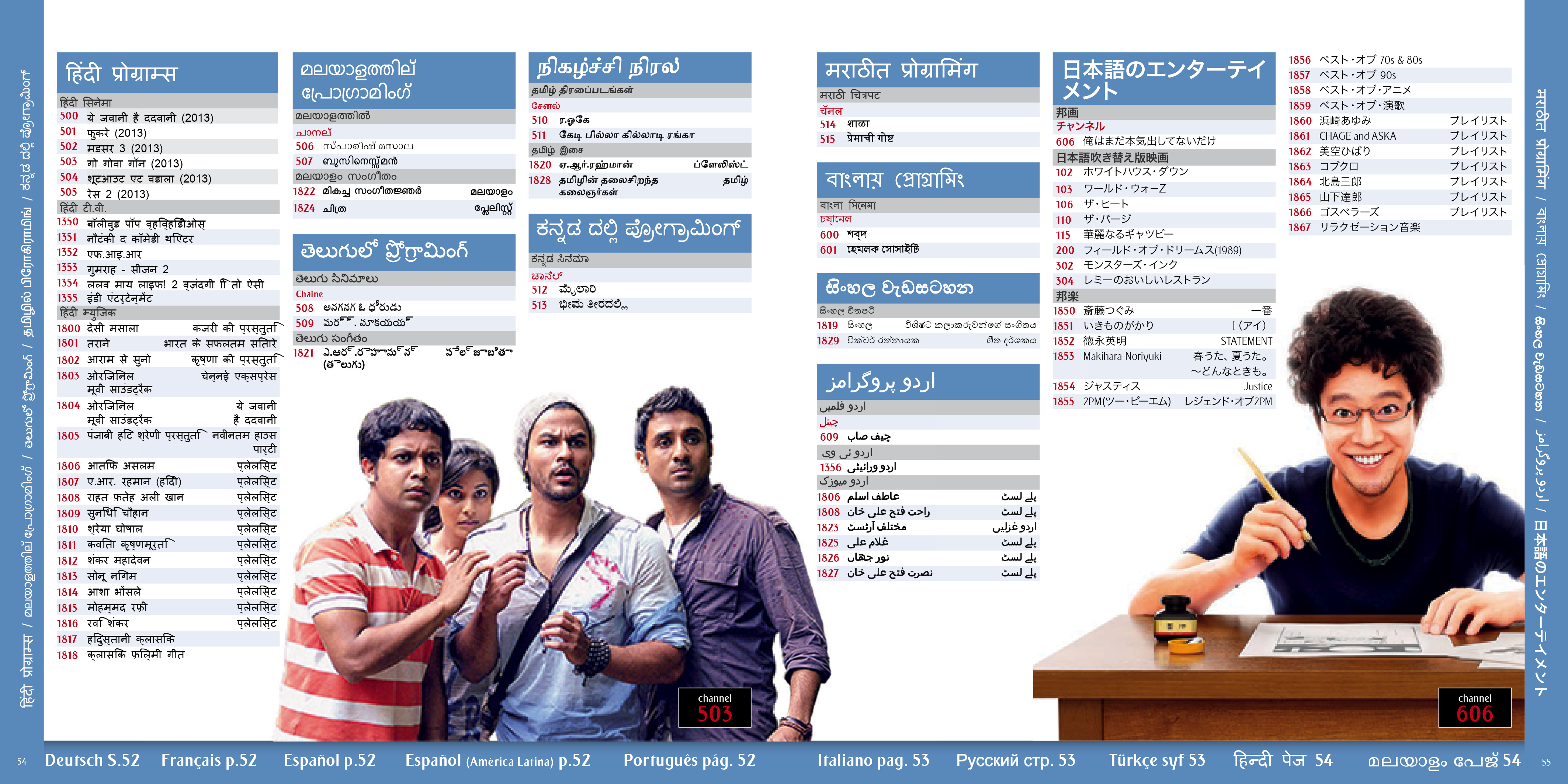 A selection of the interior pages of an in flight entertainment pages and listings